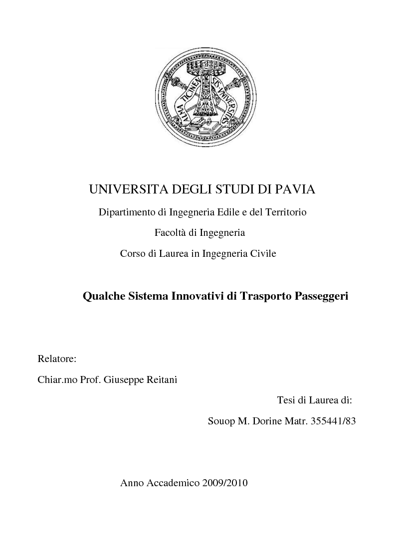 UNIVERSITA DEGLI STUDI DI PAVIA Dipartimento di Ingegneria Edile e del Territorio Facoltà di ...