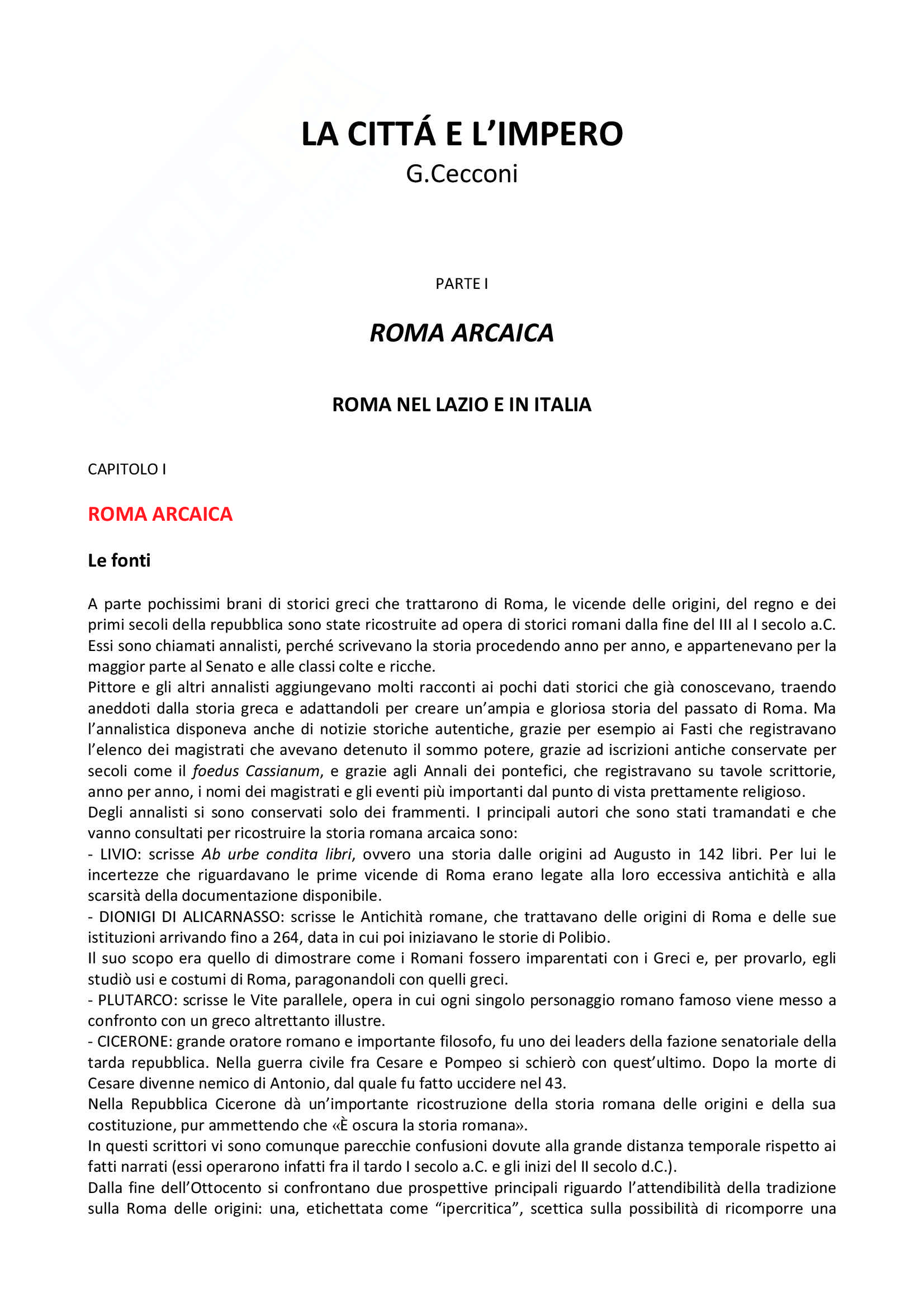 Riassunto "La città e l'impero" - Storia romana B001570 - StuDocu