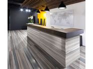 Un pavimento di marmo può rendere più bello ed elegante un bagno o un ingresso. I pavimenti in marmo sono una soluzione elegante e di classe tanto per interni che per esterni. Pavimento in marmo Mikado di Lithos Design a sfondo nero.