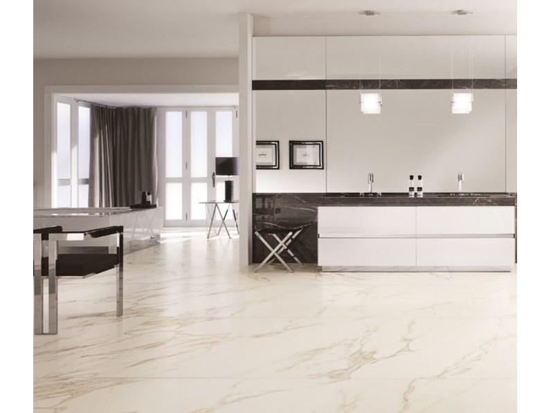 Pavimento in ceramica di Cotto d`este KERLITE MARFIL EXEDRA GLOSSY 50X100X0.55 SCONTATO